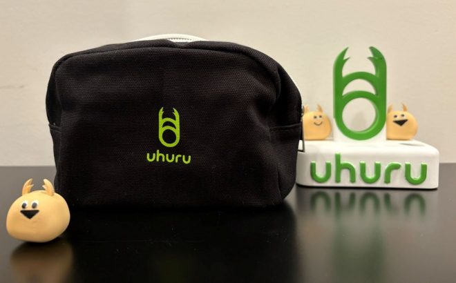 今年の記念品はウフルのロゴ入りミニポーチです。