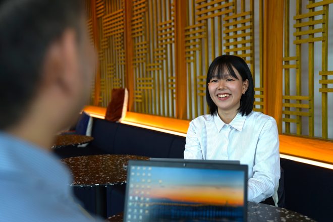 入社して2年目ですぐお客様と直接のやりとりを任せてもらえることは、私のことを信頼してくれていると感じますし、私もその信頼にしっかり応えたいという気持ちになります。